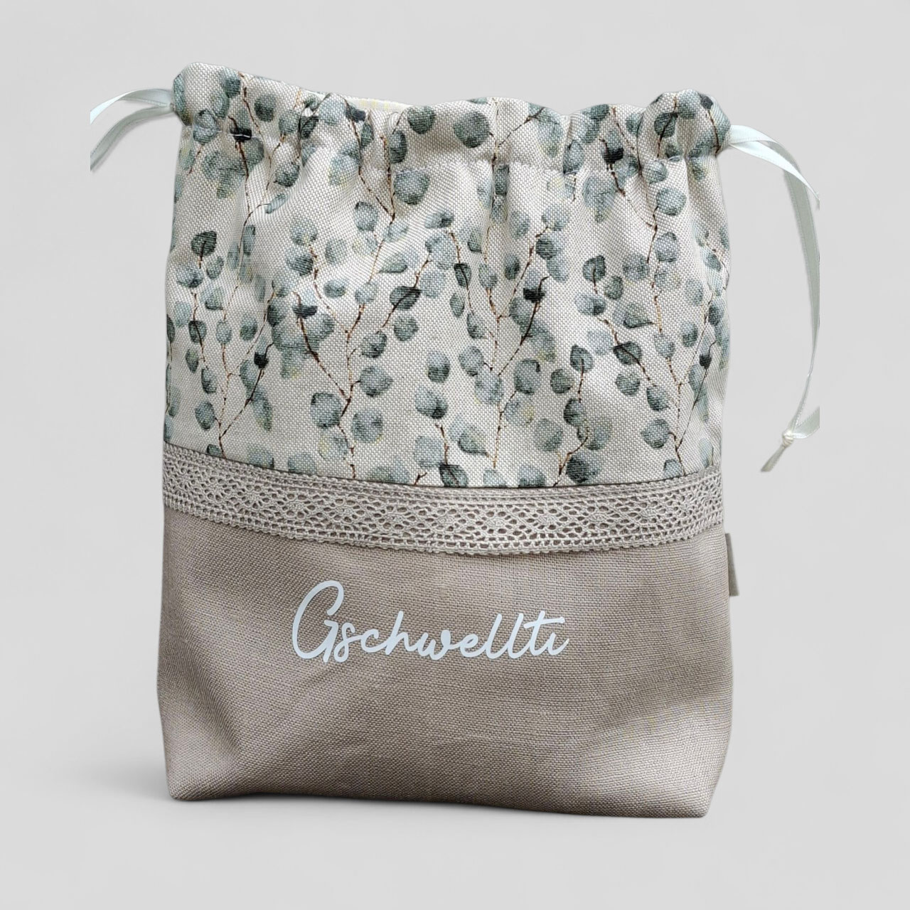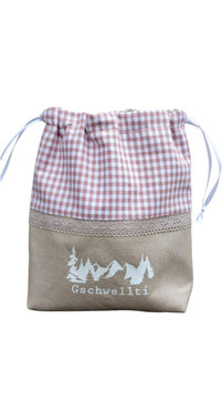 Der Gschwellti- Sack ist waschbar und kann ca. 1,5 Kg Kartoffeln warm halten.